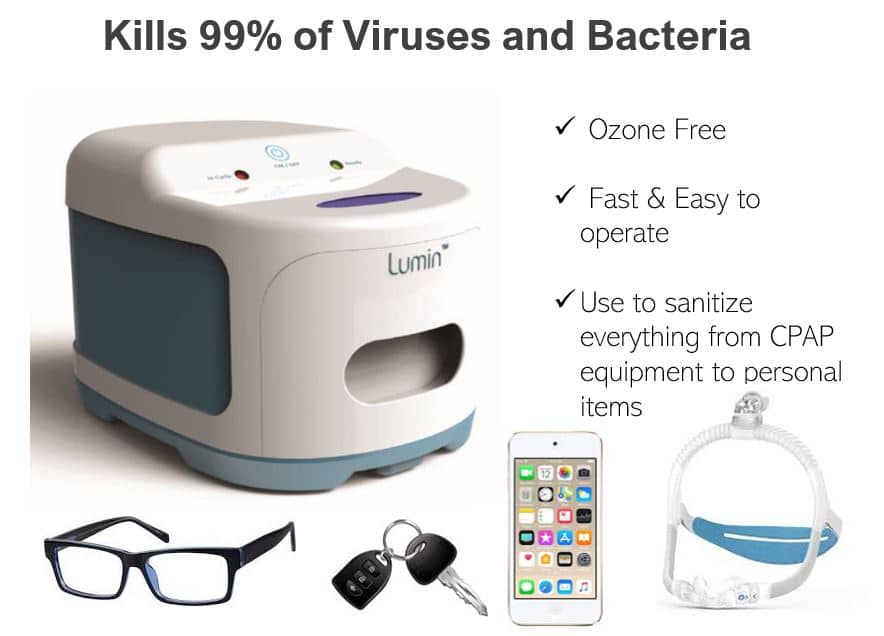 The Lumin is the easiest and fastest way to sanitize CPAP masks and accessories. With a push of a button, germs and bacteria are obliterated in just 5 minutes.  This bonus is that this device can be used to sanitize other items such as keys, toothbrushes, cellphones, toys, etc.